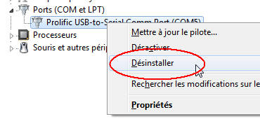 La ligne qui nous intéresse est celle concernant les Ports COM et LPT, cliquer dessus. Il va falloir désinstaller le driver en place et recommencer depuis l'étape 1.