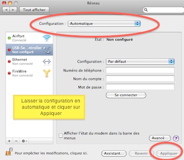 Laisser la configuration en automatique et cliquer sur Appliquer.