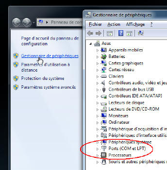 Dans la fenêtre qui apparait, cliquer sur Gestionnaire de périphériques. Une liste apparait.