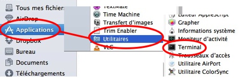 Pour lancer le Terminal, vous devez aller dans Applications/Utiltaires et cliquer sur Terminal.
